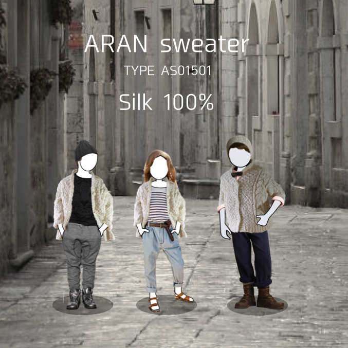 シーズニットのアランカーディガンはもちろんシルク100%で肌にに安心。